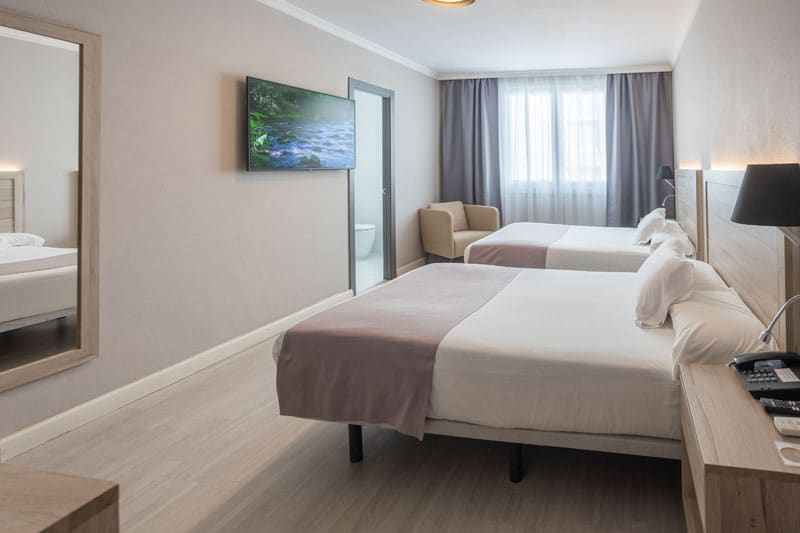En el Hotel Villa de Verín entendemos que cada viaje es único. Por eso, nuestras habitaciones dobles con dos camas están diseñadas para ofrecerte la máxima flexibilidad, ya sea que viajes con un amigo, un compañero de trabajo o un familiar.